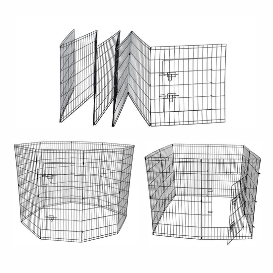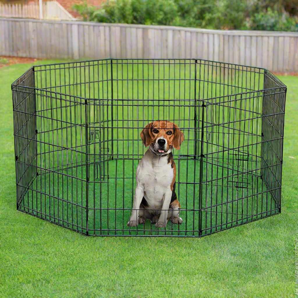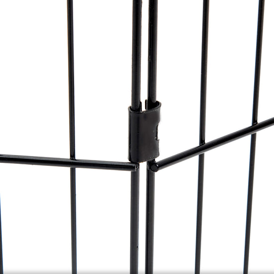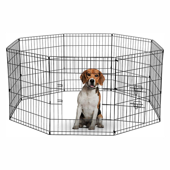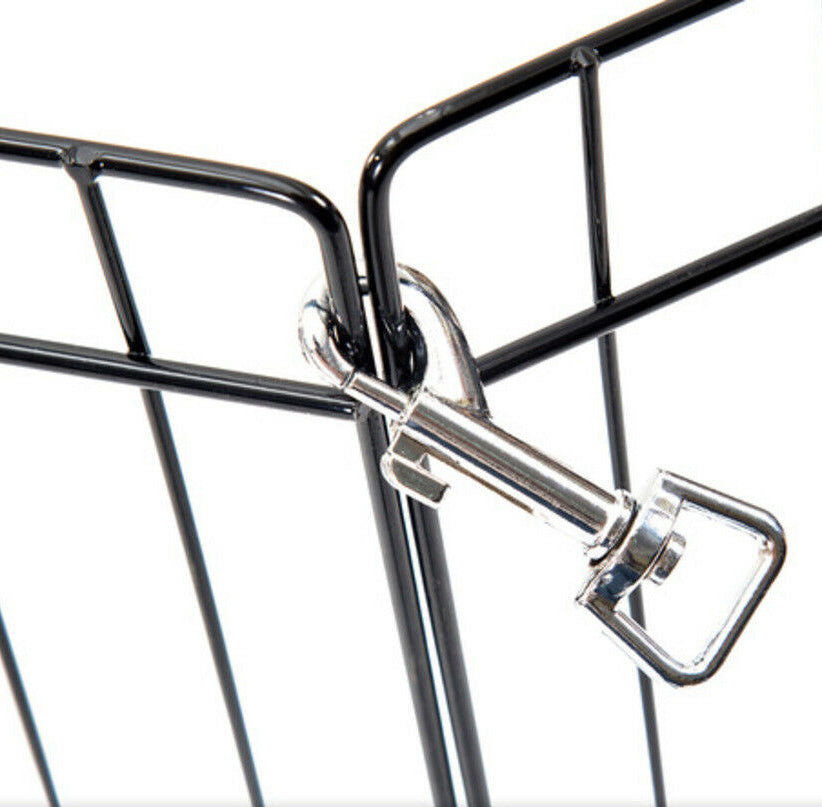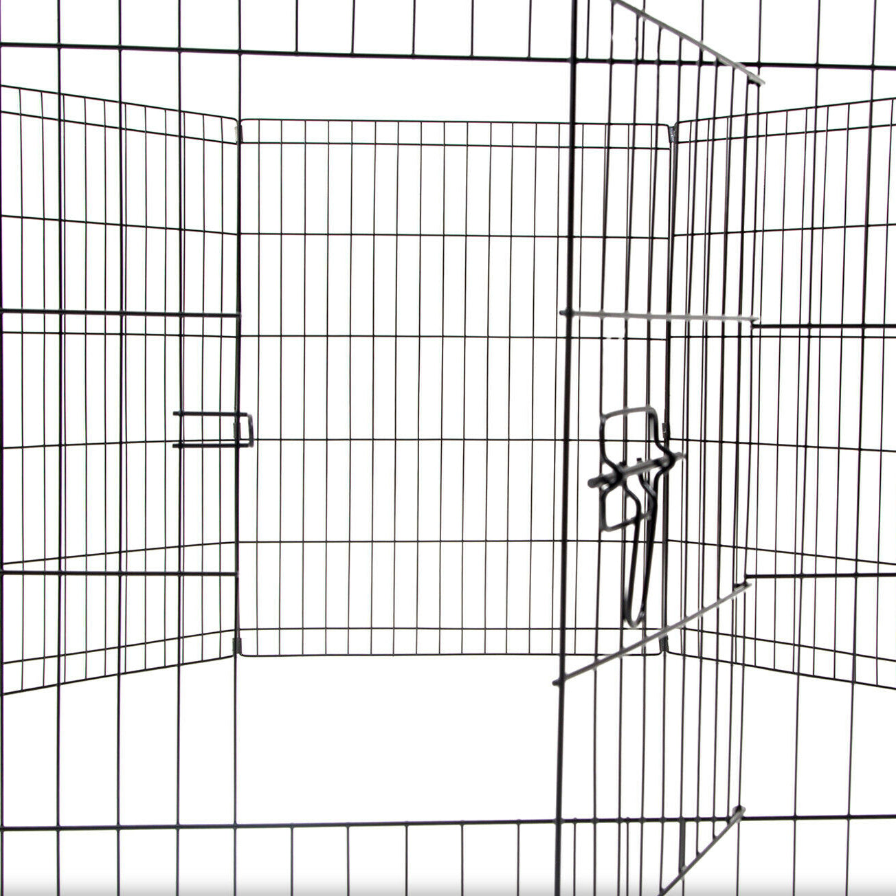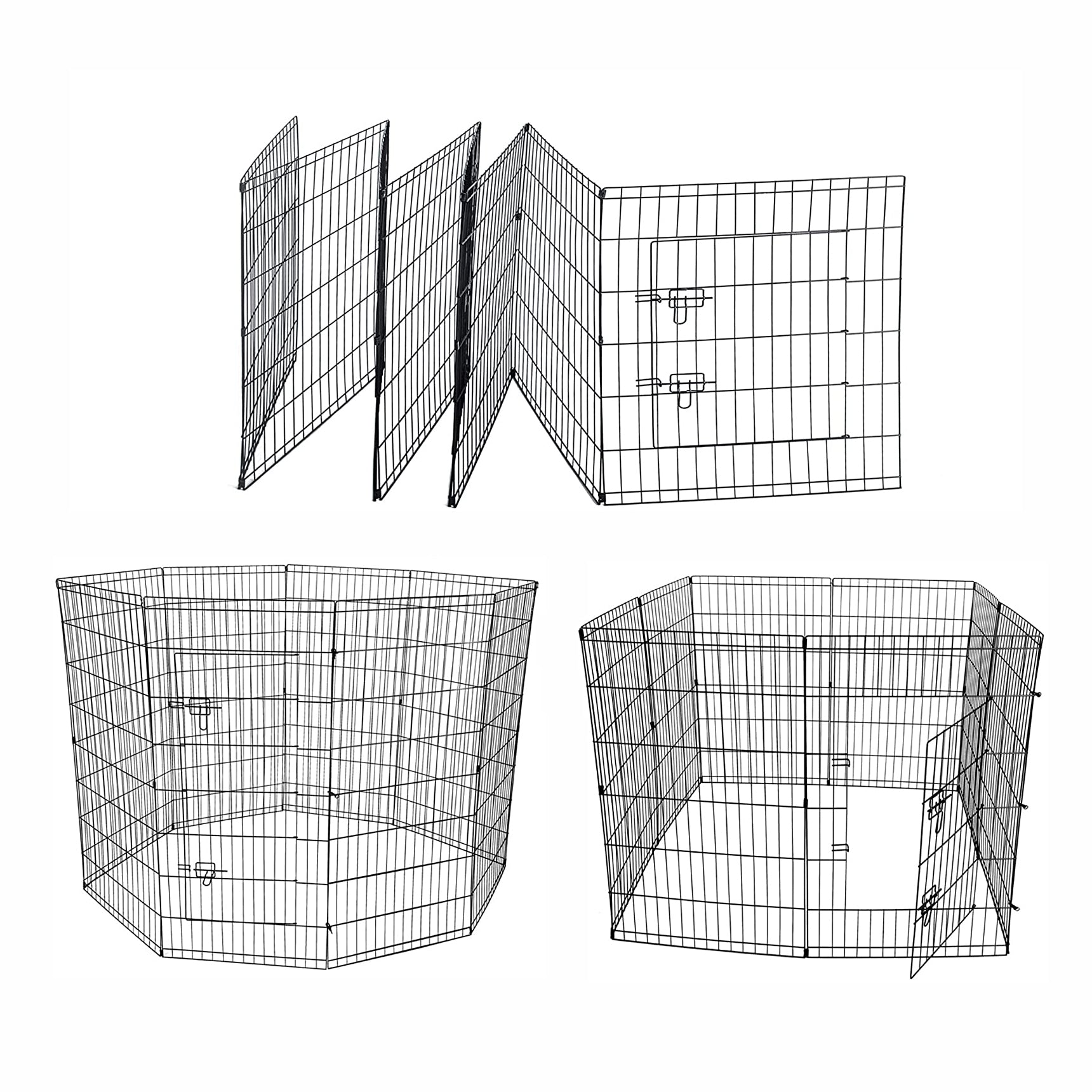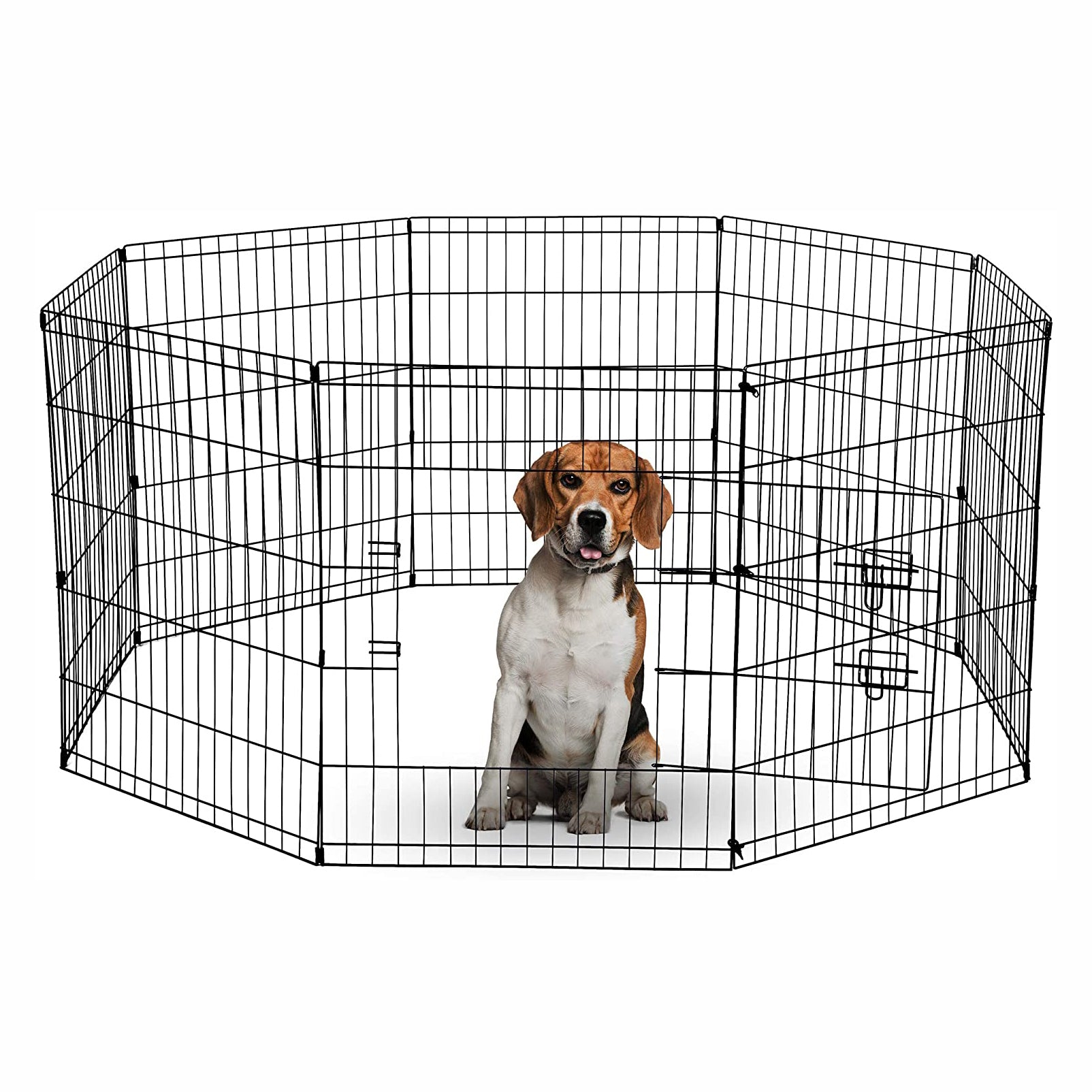 This durable and lightweight pet fence allows you to configure your playpen into different shapes. Whether it’s an octagon or a square pen, this playpen can be easily configured with just simple adjustments. They are extremely easy to set up and can be folded flat quickly for easy storage and transportation. This sturdy product comes with eight panels and includes a latching system for extra safety. It is perfect to use as a secure play area for your pets to romp around.