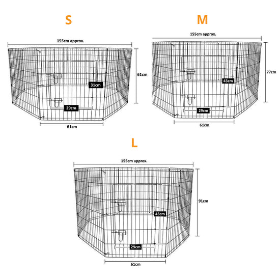 We have three heights available: 61cm, 77cm, or 91cm. The price includes 8 panels (includes 1 gate).