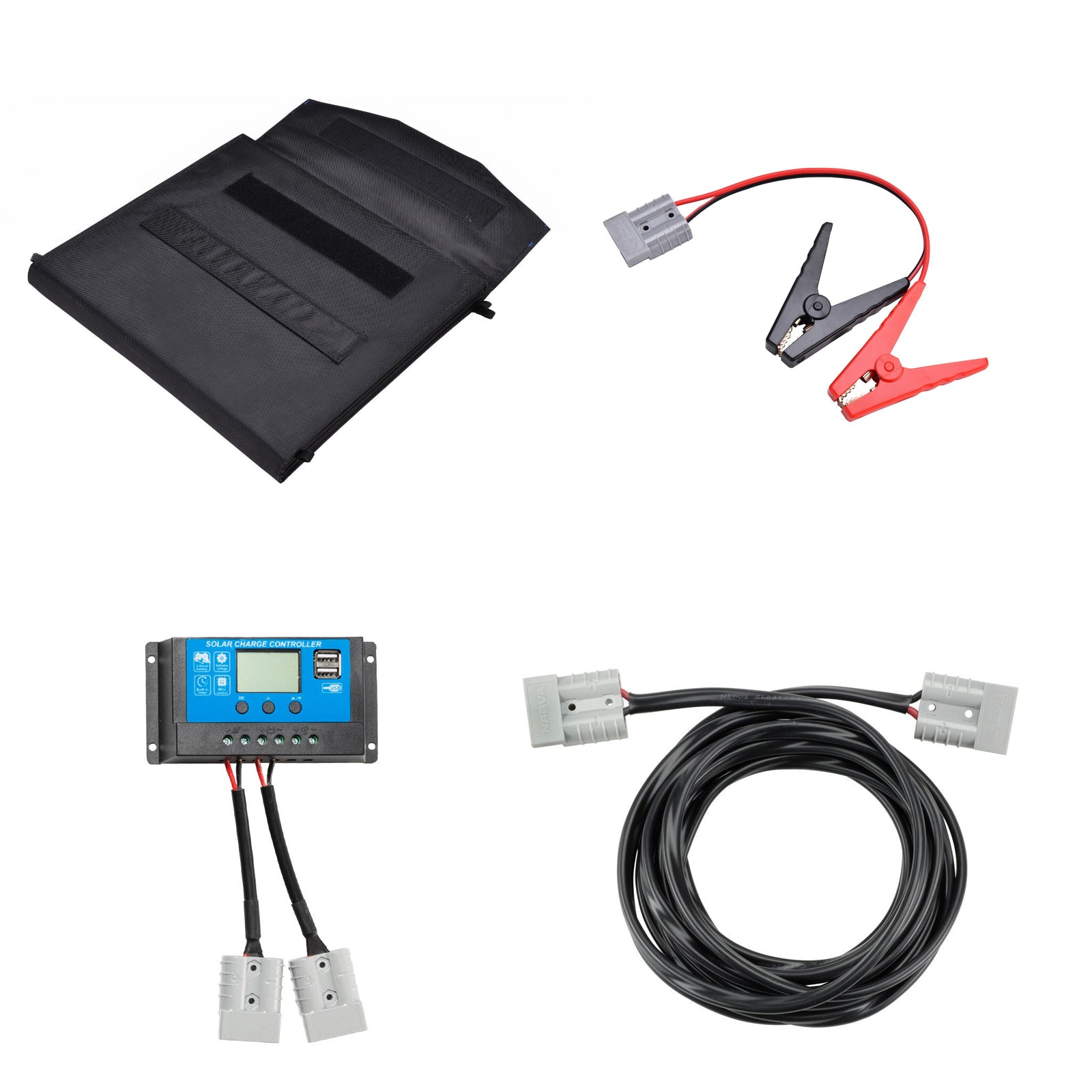 It comes with a controller which regulates voltage, ensuring devices will be charged safely and efficiently. The kit also includes an extension 2m cable, Anderson plugs and Alligator clips, ready to connect to your battery.