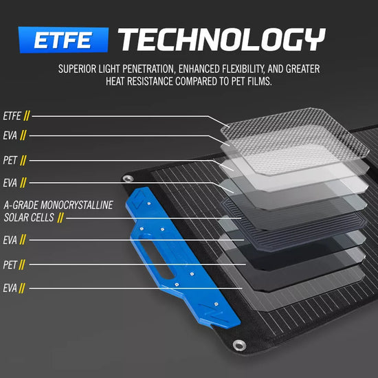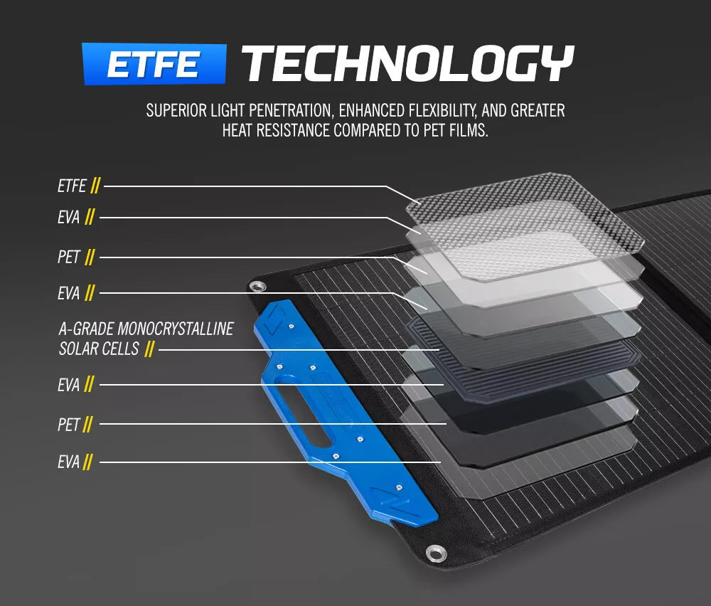 Built with A-grade monocrystalline solar cells boasting a 24% energy conversion efficiency, this solar panel delivers maximum power output even in challenging conditions. The innovative ETFE film technology enhances light penetration and provides superior heat resistance, ensuring faster charging speeds and greater durability. Adjustable kickstands let you position the panel at the optimal angle to absorb sunlight, while the auto-optimization feature ensures immediate re-connection when sunlight returns.