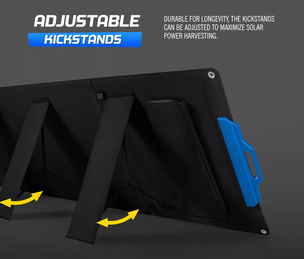 - Adjustable Kickstands: Maximize solar energy harvesting by angling the panel towards the sun