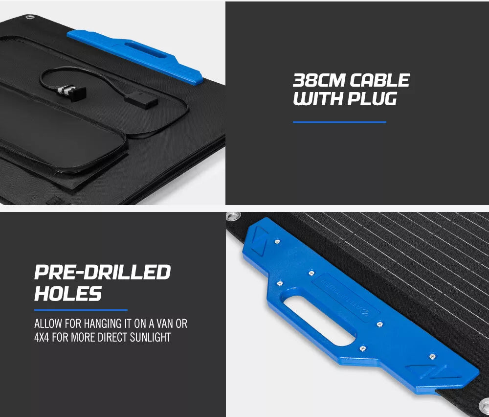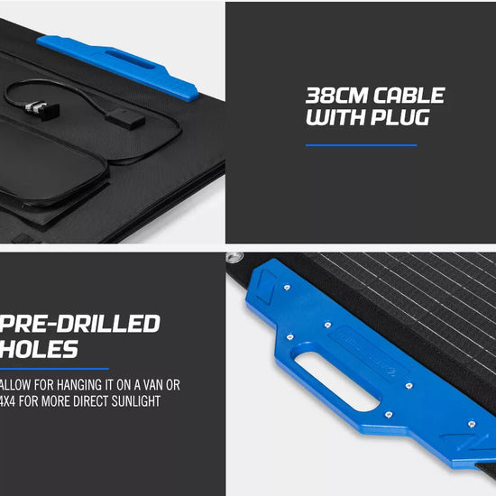 Paired with an advanced MPPT controller, this solar panel increases energy efficiency by 20% compared to traditional PWM controllers, making it compatible with 12V and 24V systems. The sturdy handles and magnetic closure make it easy to set up and pack away, giving you seamless energy access wherever your journey takes you.