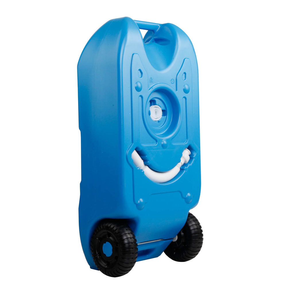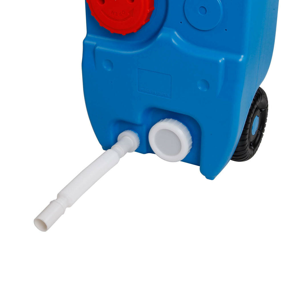 This portable wheel water tank is definitely what you need for your camping and road trips. Large water volume, handle and wheels are ideal for storing and transporting water. Its unique design with flexible pipe and faucet makes it easy to clean, drain and refill the water.