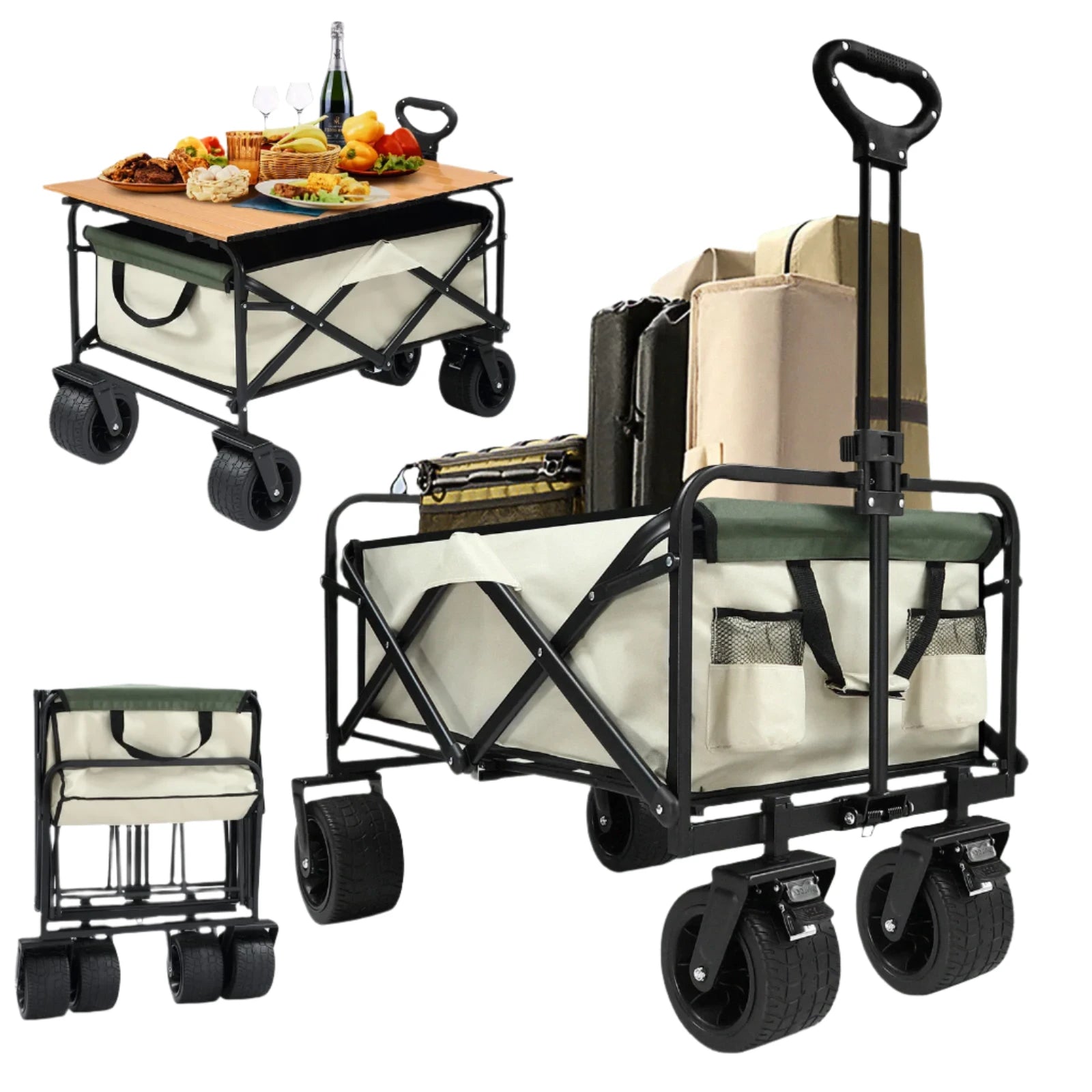 Perfect for the beach, camping, or any outdoor adventure, the All-Terrain Folding Trolley with Table makes transporting heavy gear across soft terrains a breeze. With a 175kg capacity and large, sturdy wheels designed to handle sand and uneven surfaces, this trolley ensures smooth movement wherever you go. The added bonus of a foldable carbon steel tabletop provides a quick and convenient dining surface, ideal for setting up meals on the go. Built for durability and versatility, it’s the perfect solution for your outdoor needs.