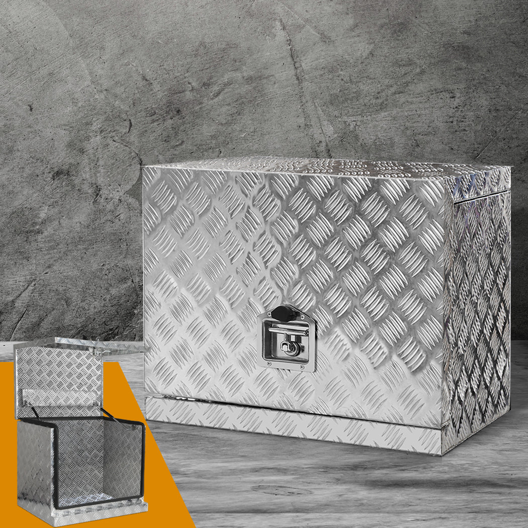 Crafted from high-grade aluminium, this toolbox is built to last and withstand even the toughest weather conditions. It features a spacious interior with ample room for all your tools, camping gear, or other essentials. The lid is reinforced with a heavy-duty hinge and two locking latches for secure closure and easy access.