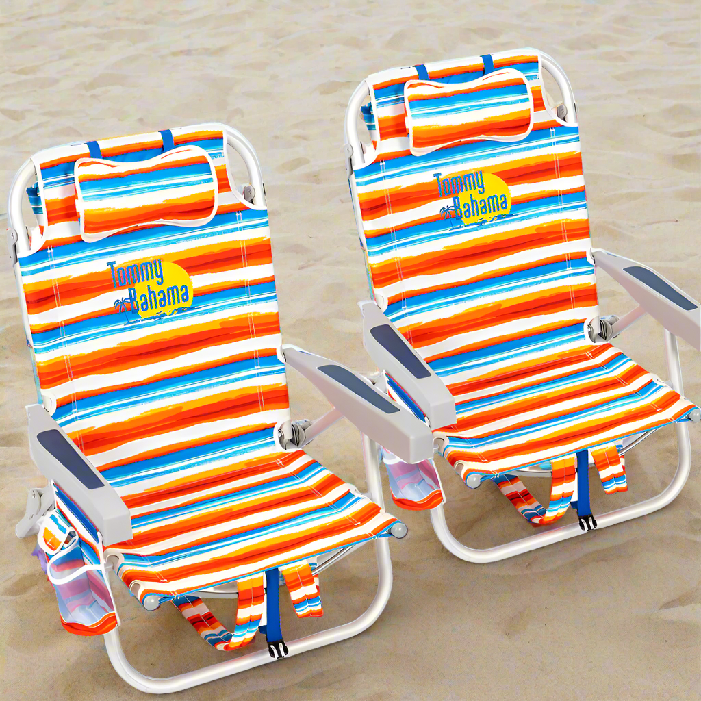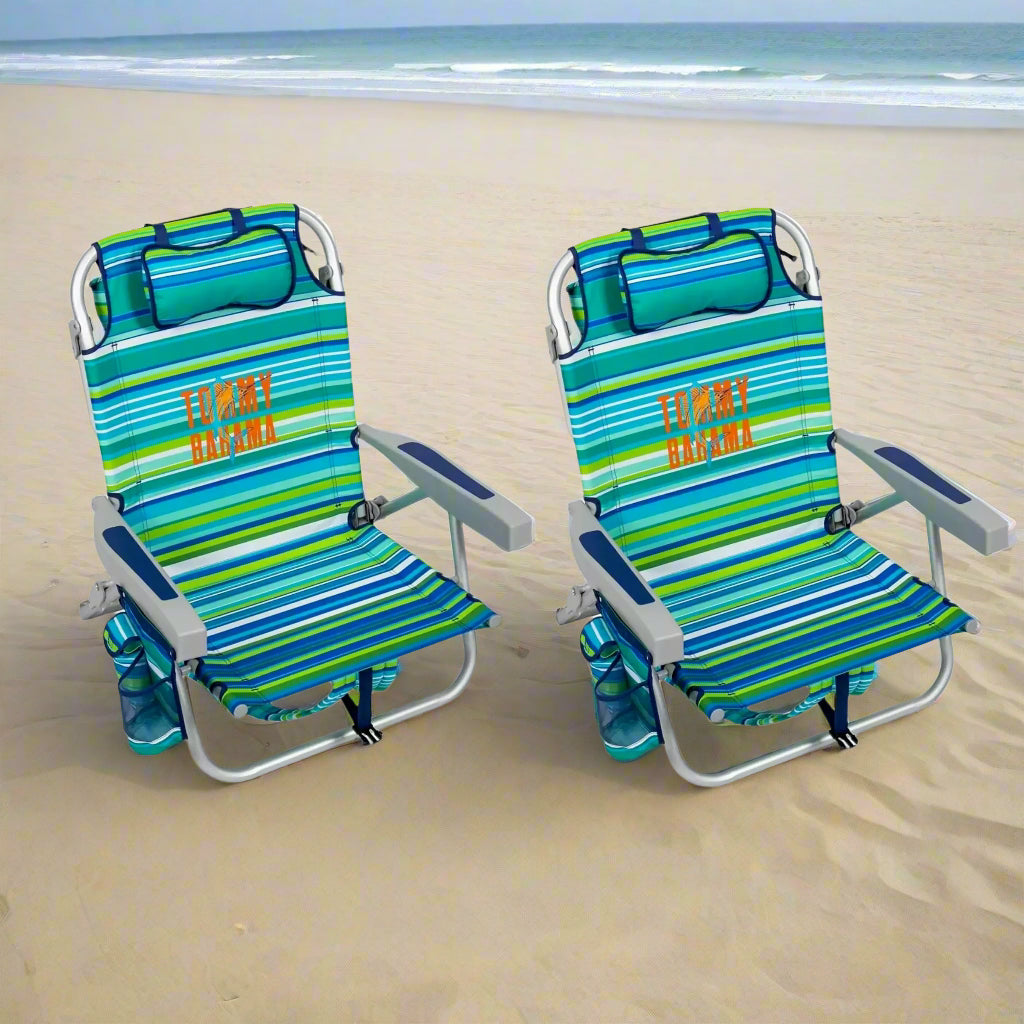 Each beach chair comes complete with an insulated pouch, towel handle, padded pillow and armrests. The package includes two chairs!
