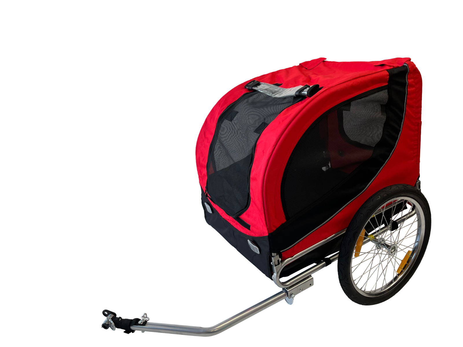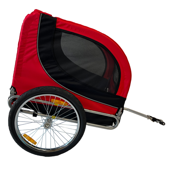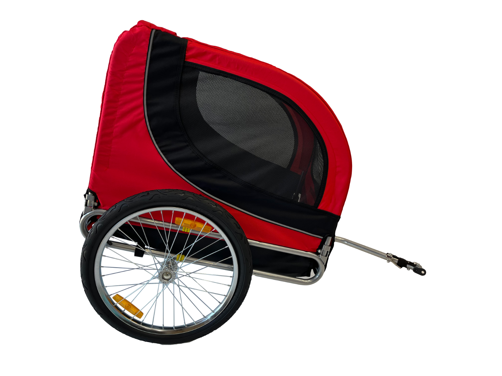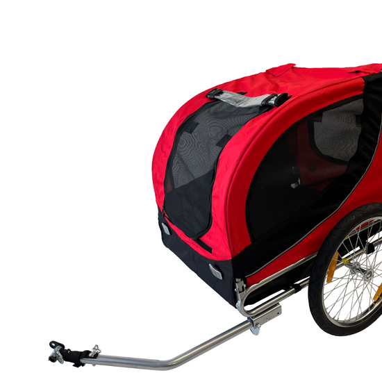 This pet trailer is ideal for puppies and small dogs, supporting up to 40kg. The body is built with a lightweight, sturdy steel frame and water-resistant polyester fabric. The mozzie screen and weather-resistant trailer keep your pet comfortable and protected.