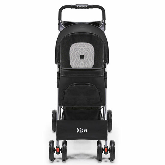 The stroller comes with a meshed front to give your furry friend a comprehensive view of the surroundings all while reclining in style. Its modern spring shock absorption will ensure a smooth experience even through an uneven surface. It enables flawless airflow, great visibility, comfort and protection – all of the necessary features packed in one.