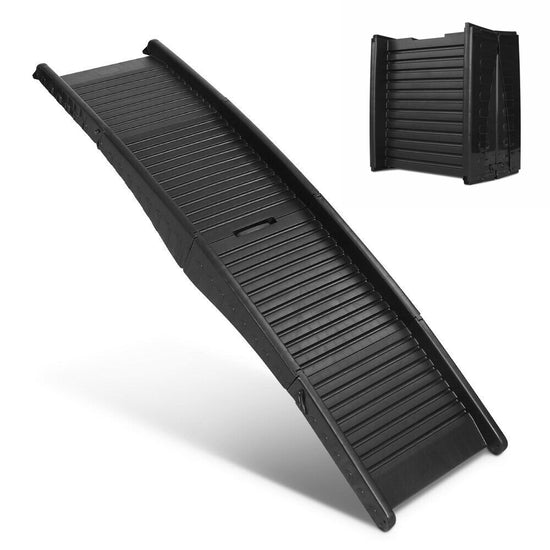 - Foldable: The bi-folding pet ramp folds in half for easy carrying and storage.