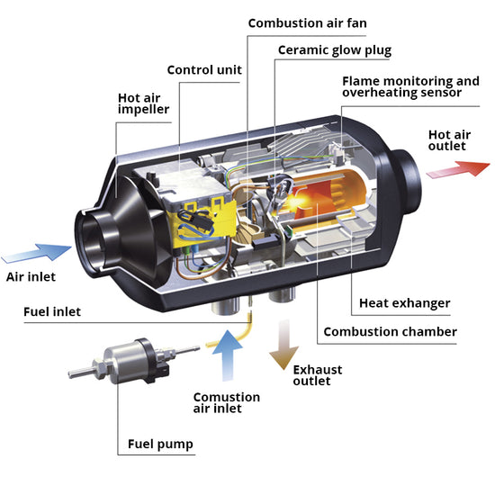 Diesel Heater for CaravanVisit the pages below for more information: DIESEL HEATER SPARE PARTS AVAILABLE FOR SALE: Glow plugs, temperature sensors, replacement controller, extension ducts, upgraded muffler, fuel tank cover, and more. Video: How to Install a Diesel Heater in a Caravan, Manual, Photos and Tips. |