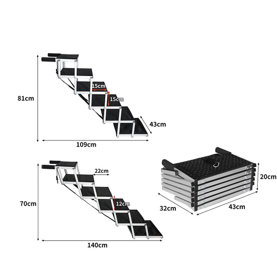 - Dimensions (folded – 5 steps): 43cm x 15cm x 32cm (W x D x H)