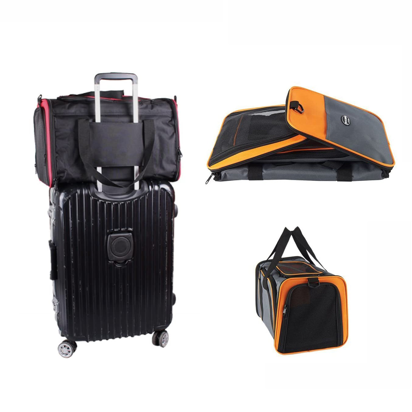 The mesh windows provide good ventilation and the base is laid with a removable comfy floor mat. The large openings, both front and top, allows easy in and out while the carry straps help to easily transport the carrier. When not in use, the Pet Crate can be collapsed and folded away.