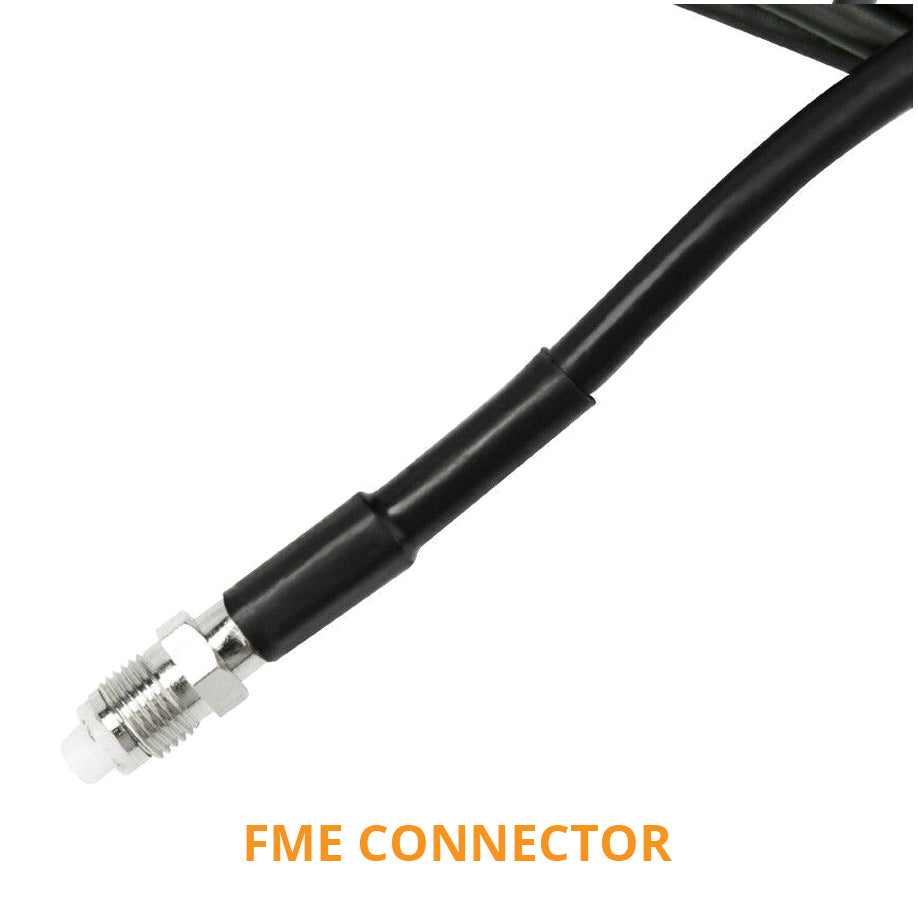 - The FME Female connector is a smaller 5mm connector which makes routing through the vehicle firewall easier than standard UHF connectors