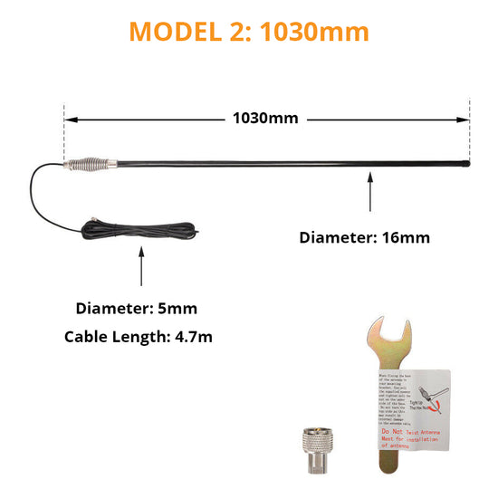 - 1 x UHF Antenna with Spring Base (720 mm or 1030 mm)