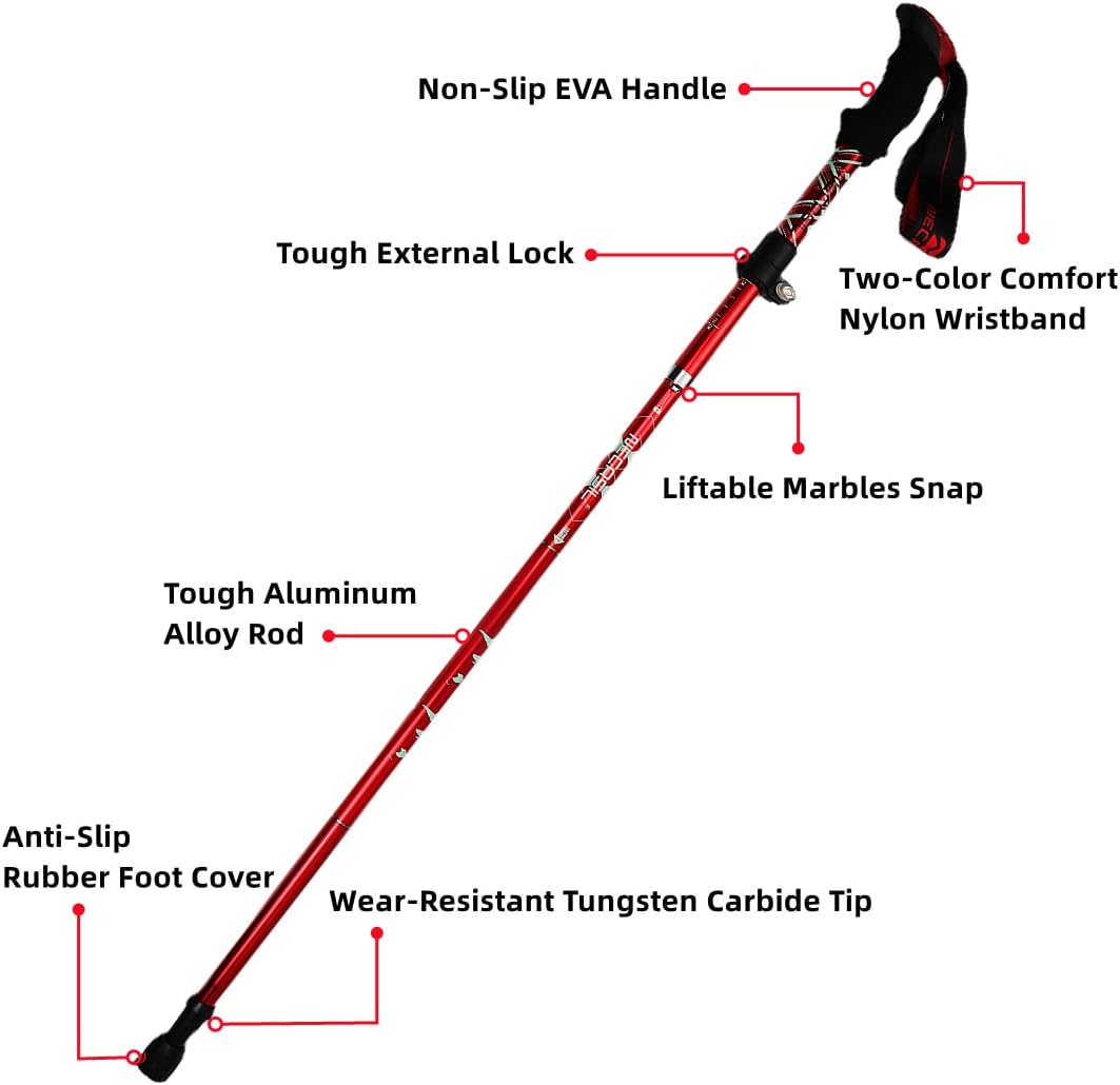 - Adjustable Length: Easily customizable from 65 cm to 135 cm to suit different heights and terrains.