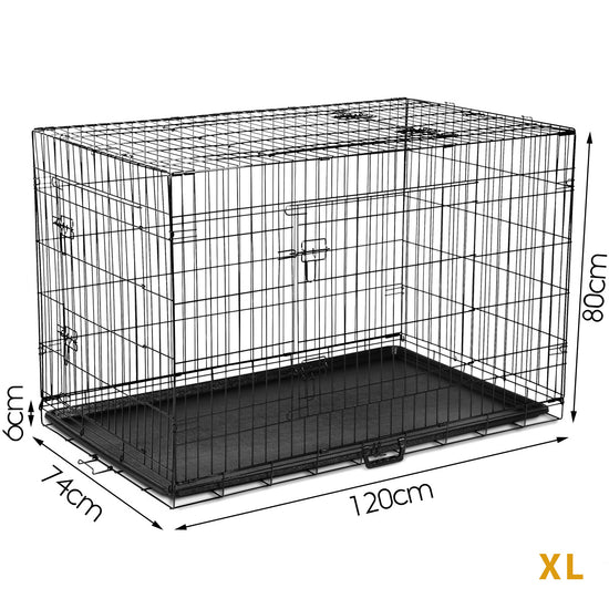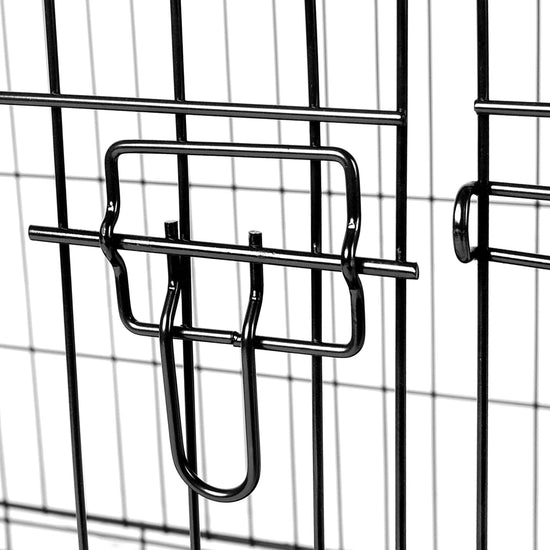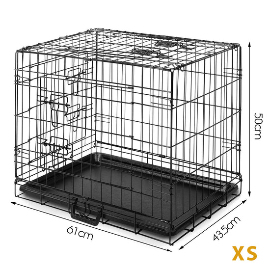 The foldable cage has triple access doors that provide easy access for your pet to easily enter and exit, as well as dual safety locks on each door to keep your pup securely inside. Built with quality sturdy wire construction with black powder-coated finish. The slide-out / removable plastic tray for easy cleaning. Being collapsible, our pet cage is easy to transport and to store within seconds as no assembly is required.
