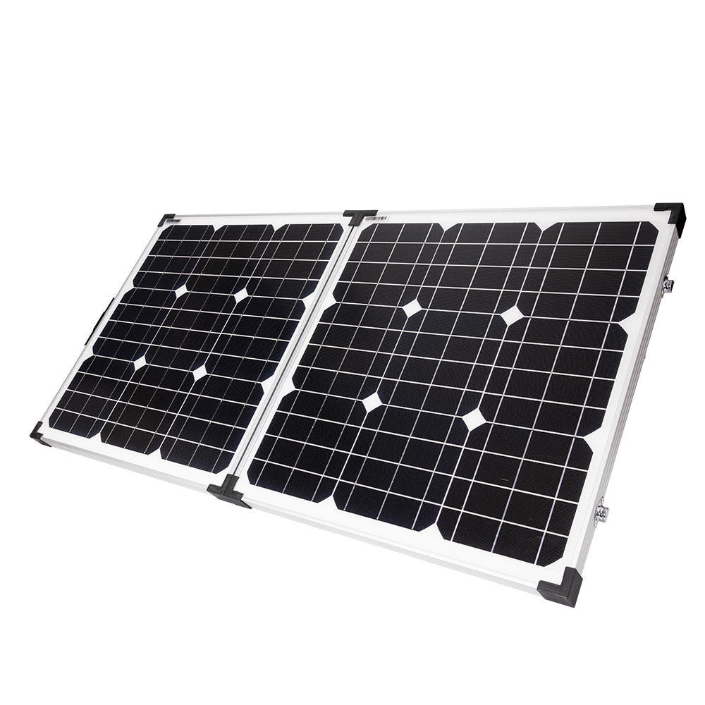 This folding solar panel kit comes with a connection cable, aluminium fold-out legs, heavy-duty steel fasteners, a solar regulator and alligator clips. You will only need your own 12V battery, then you have everything you need to keep charged when you are camping or off-grid.
