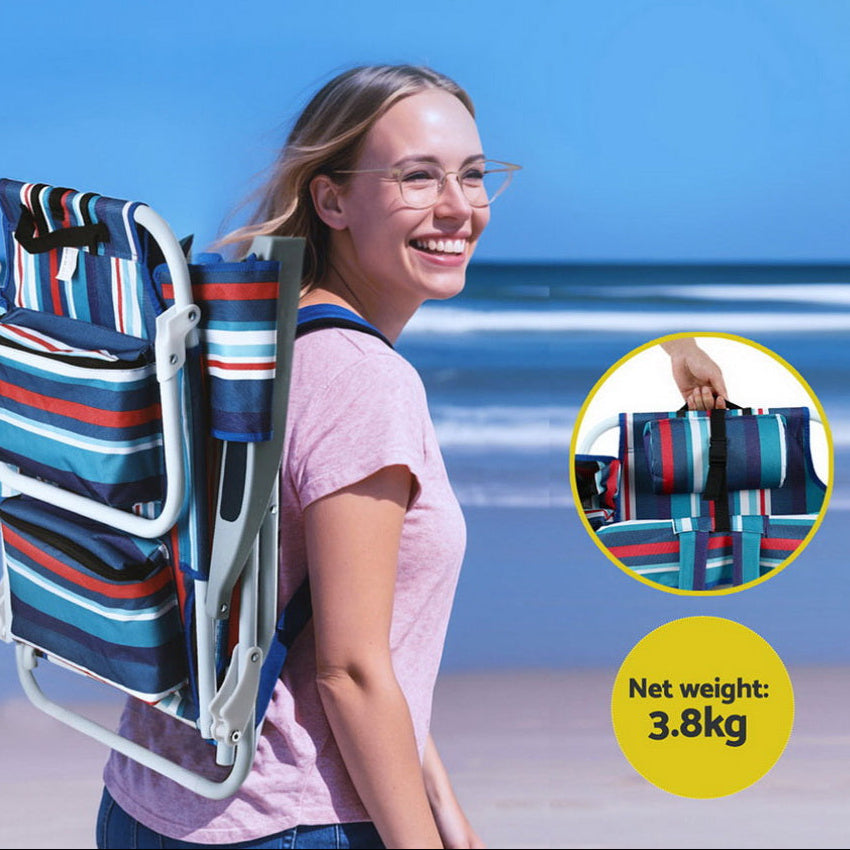 Transform your beach days with the Backpack Beach Chair Set – designed for comfort, style, and practicality. With 5 adjustable positions including a full lay-flat mode, it easily adapts from sunbathing to afternoon naps. The lightweight 3.8kg backpack design makes it effortless to carry, while built-in storage keeps everything you need within reach.