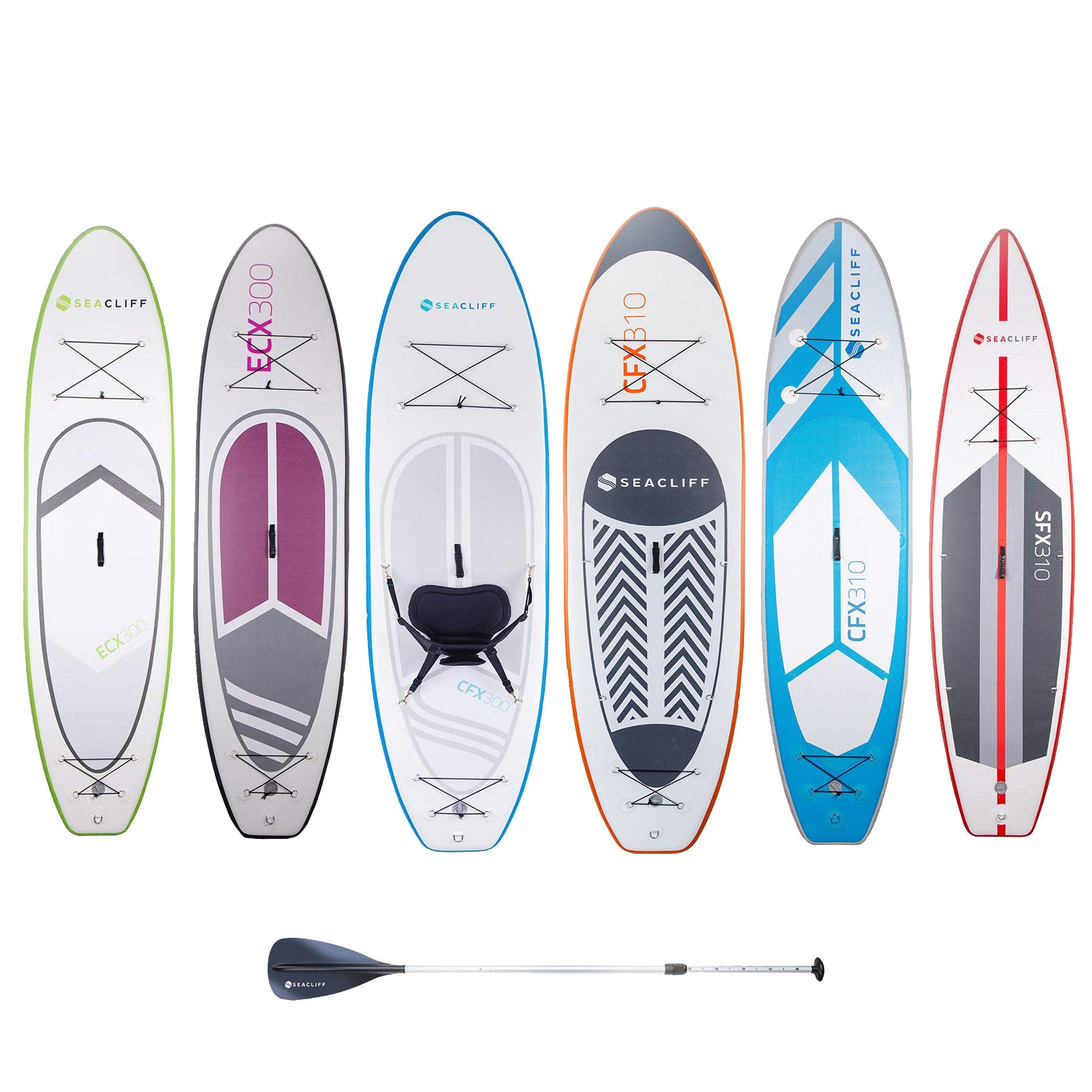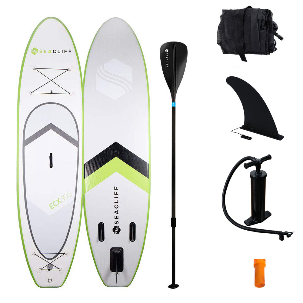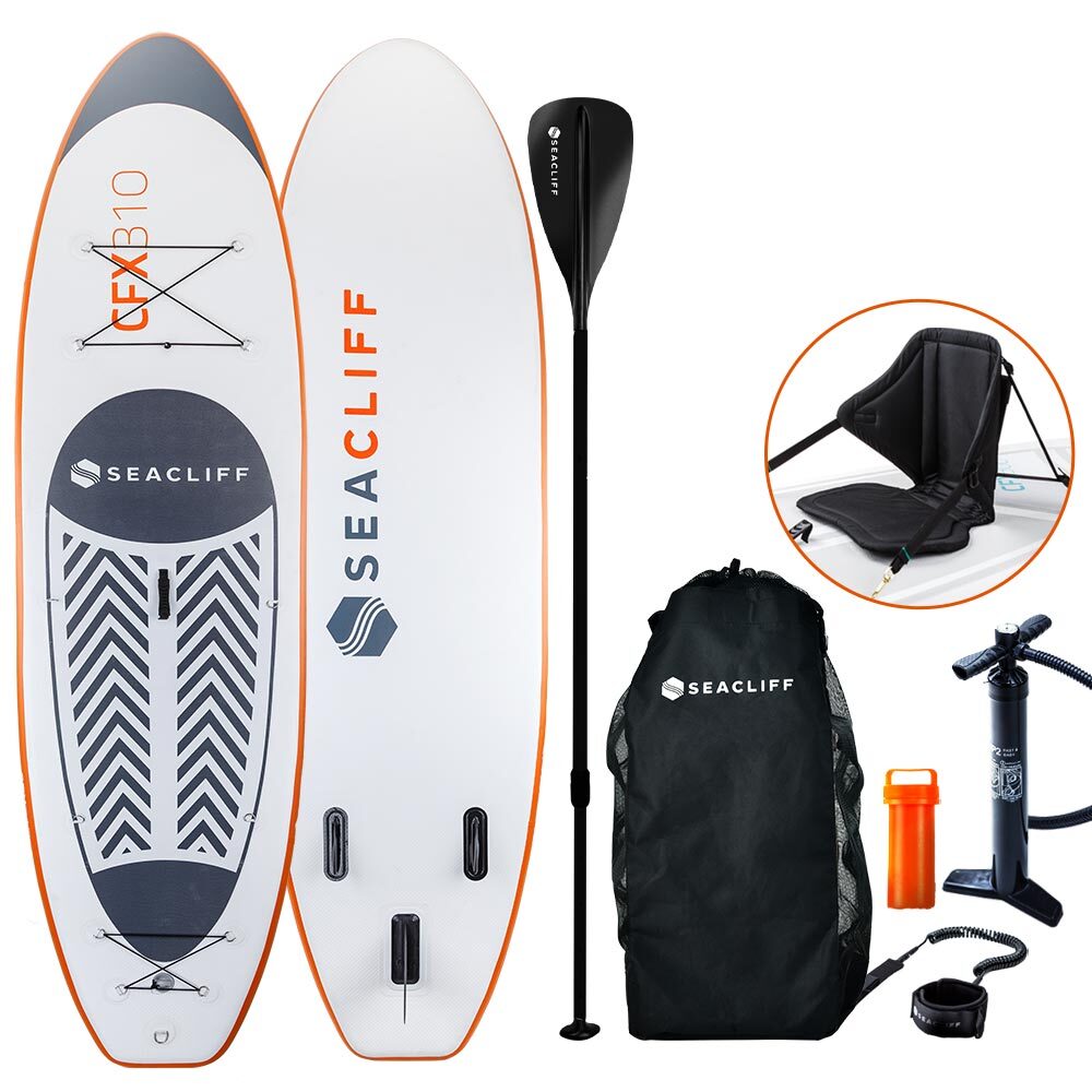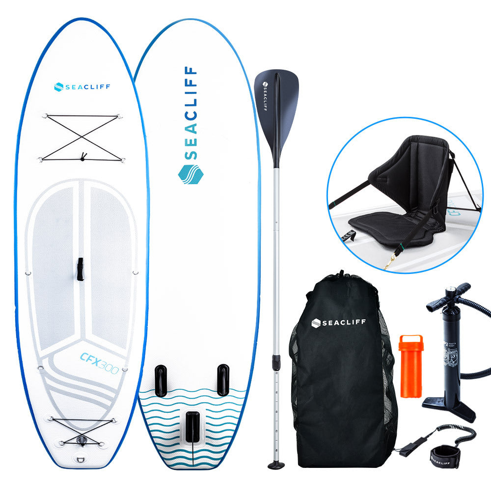 - Includes: Paddle, carry bag, hand pump, repair kit, leg leash, attachable kayak seat