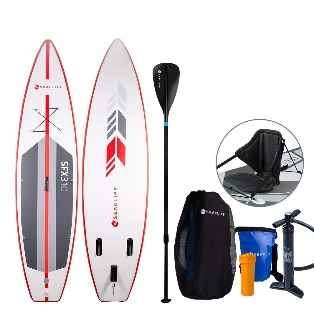 - Includes: Paddle, carry bag, hand pump, repair kit, attachable kayak seat, dry bag