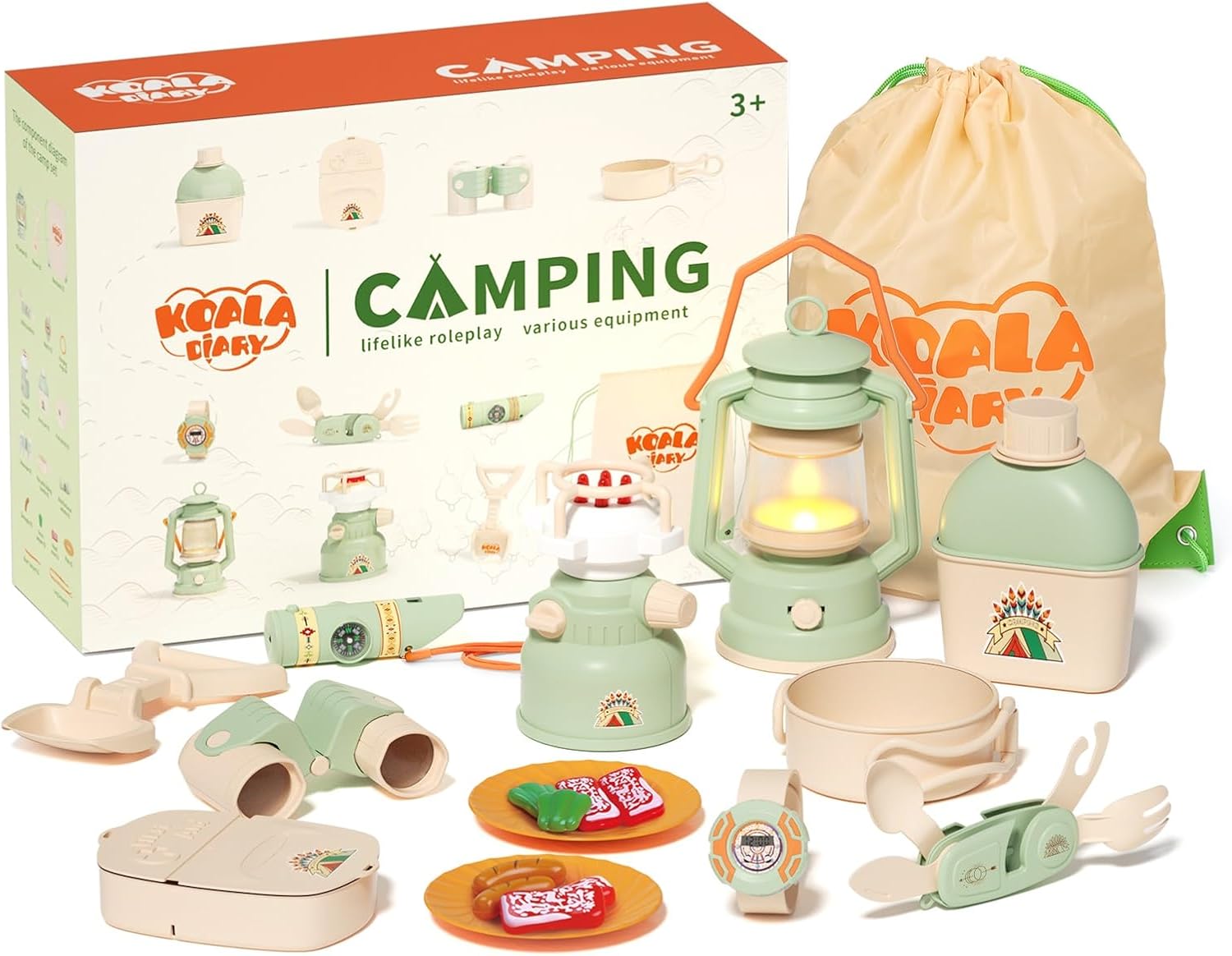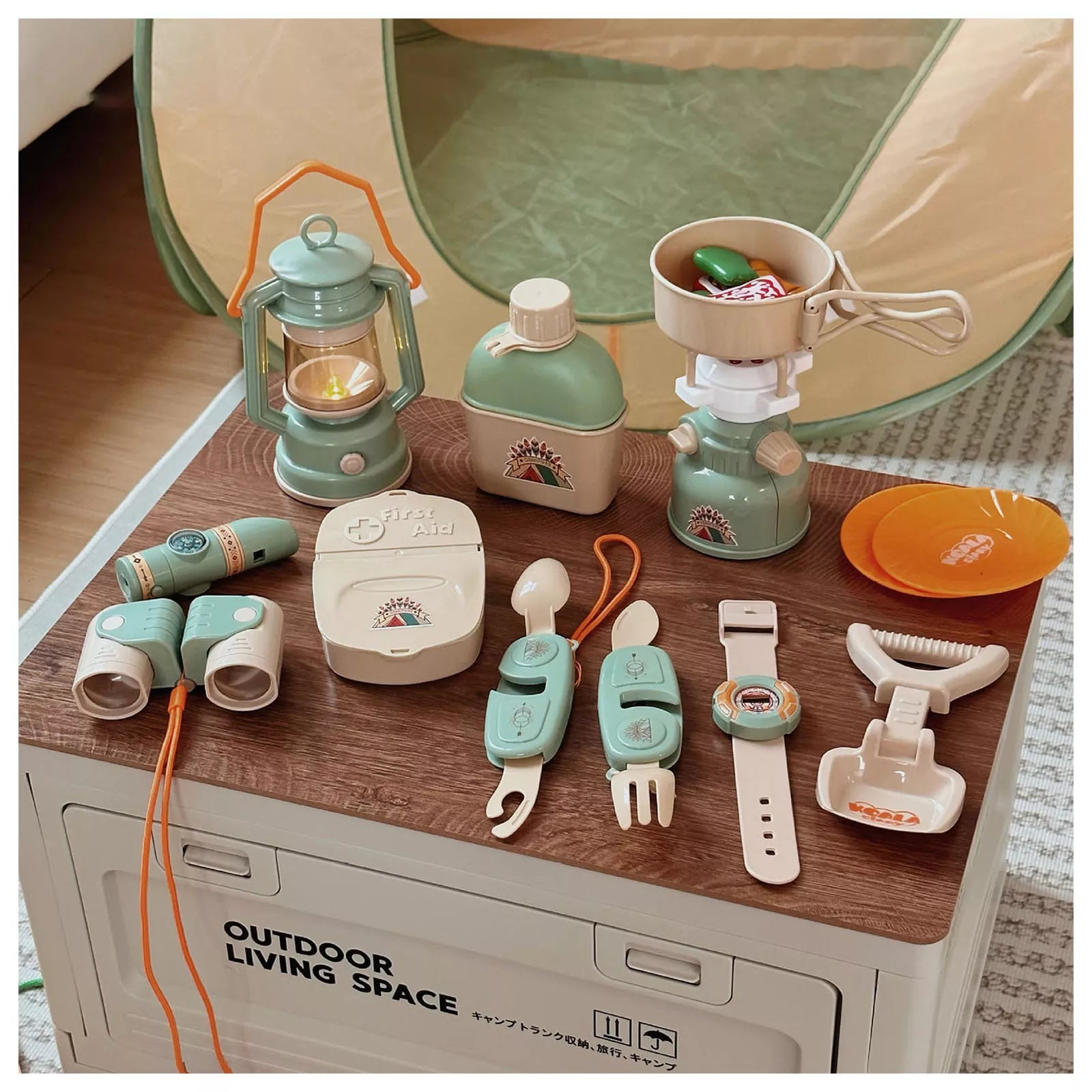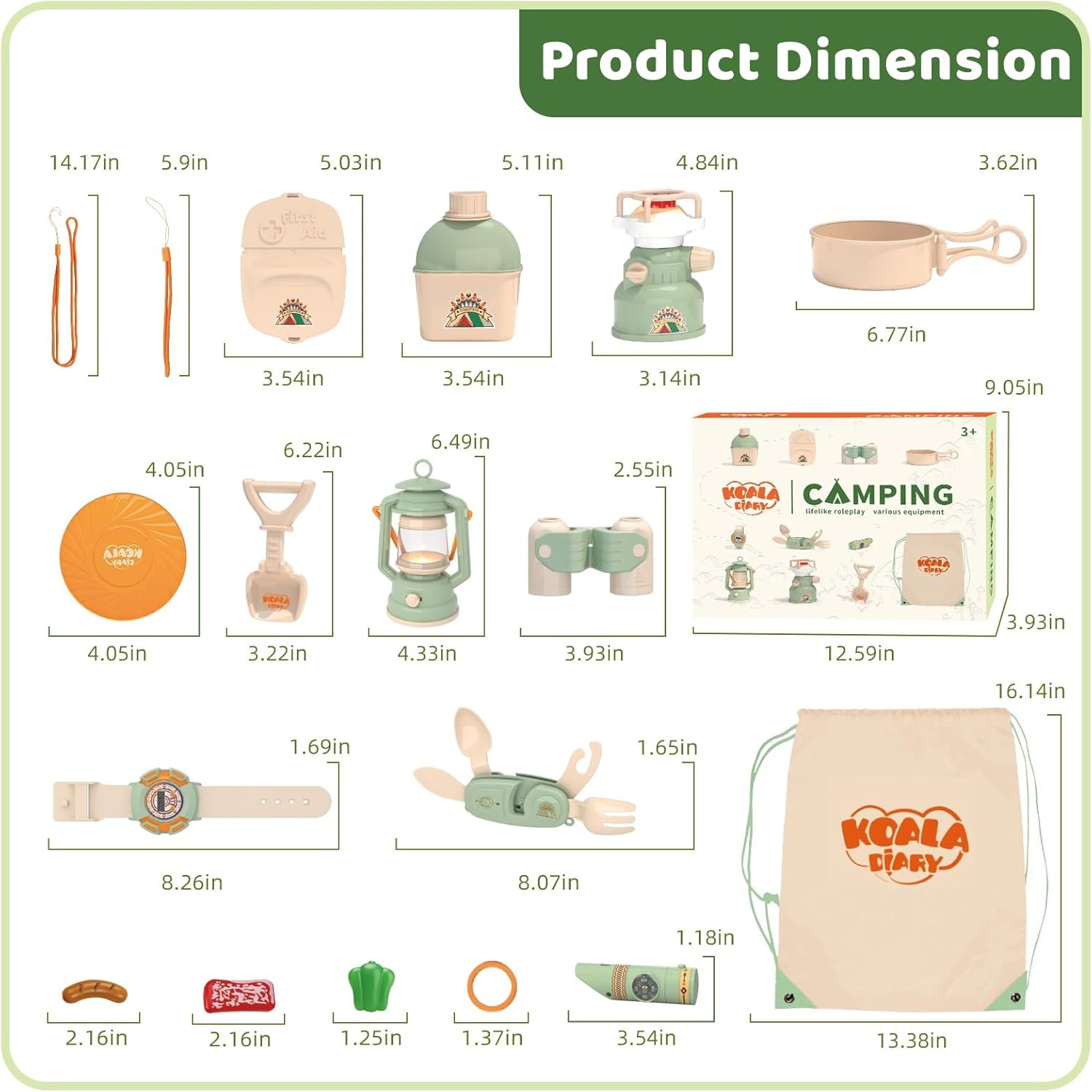 Ignite your child's imagination with this fantastic camping set. Perfect for both boys and girls, this set simulates real camping activities, providing endless fun and adventure. The set includes realistic camping toys and camping kitchen play set, and a convenient drawstring backpack to store all the accessories.