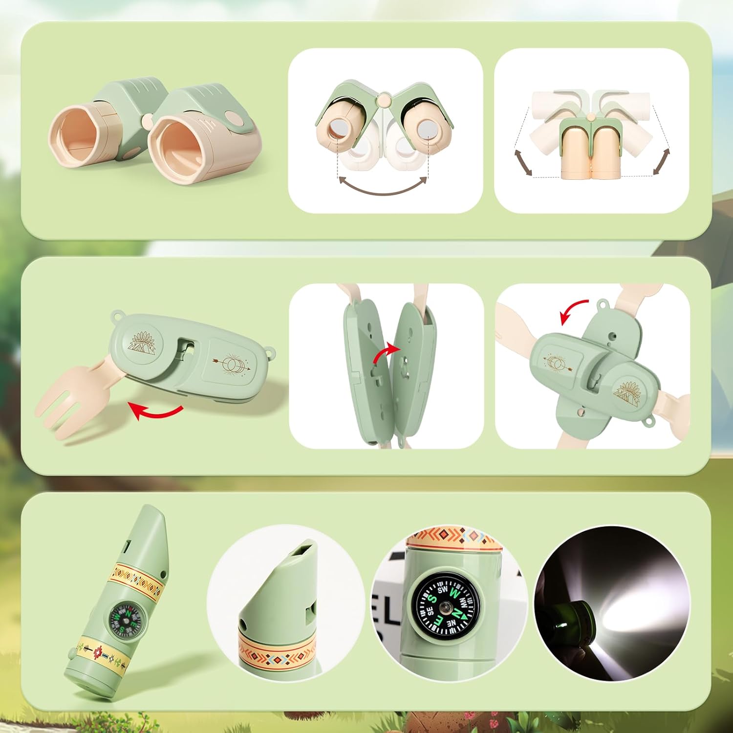 - Binoculars and Flashlight: Encourage exploration with a pair of binoculars and a multifunctional flashlight, essential tools for any young adventurer.