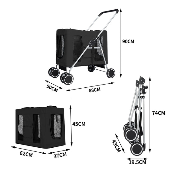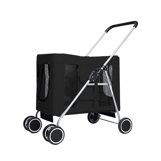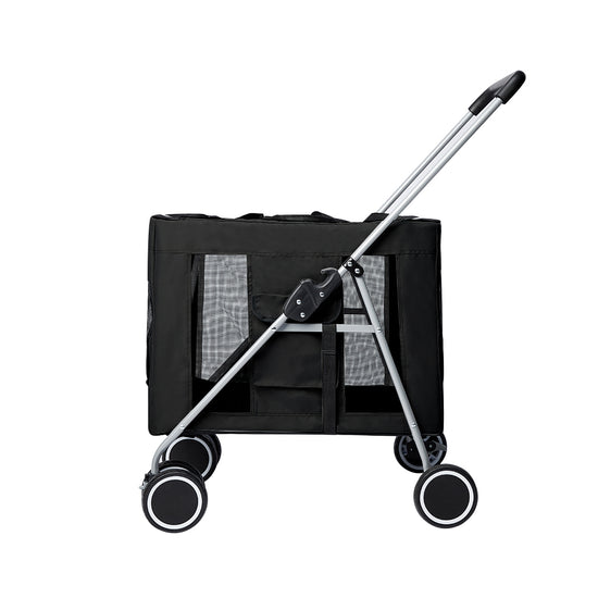 Ideal for puppies, cats or small dogs, this pet stroller is built with a lightweight and sturdy steel frame with a water-resistant polyester fabric. The mozzie-screen and weather-resistant cart keeps your pet comfortable and protected all the time.