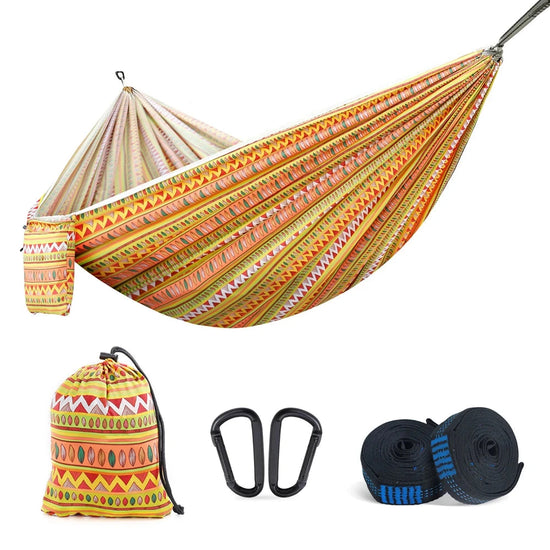 Light, strong, and beautifully bold—the Lush Camping Hammock is made for adventurers who want more than just a place to rest. With vibrant patterns and a tough, tear-resistant design, this hammock is your go-to for camping trips, backyard hangs, or anywhere you want to unwind.