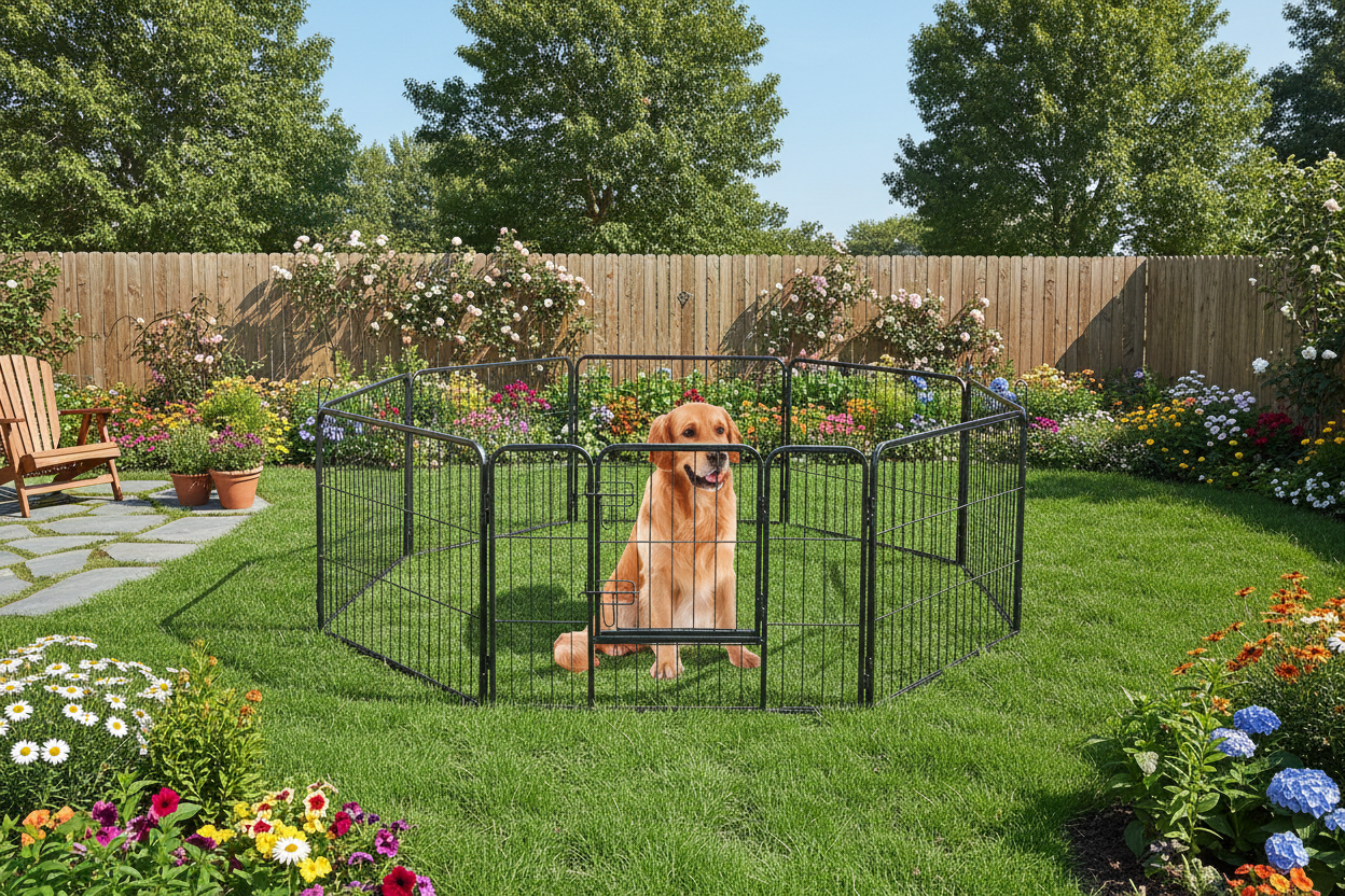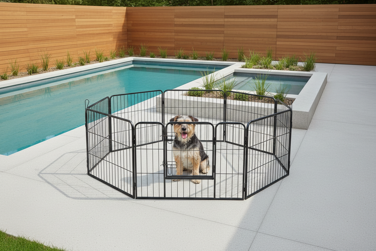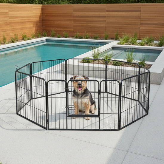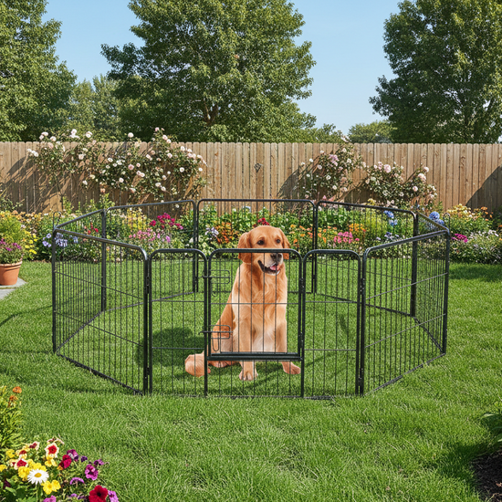 The versatile and durable fence playpen is ideal for creating a safe and secure play area for your children or pets. The panels and access gate can be configured into a variety of shapes and sizes, making it easy to customize the space to suit your needs. Whether you're looking for a small play area for your furry friend or a larger enclosure for your kids, this playpen is the perfect solution. Give your loved ones the gift of peace of mind and security with this versatile and sturdy fence playpen.