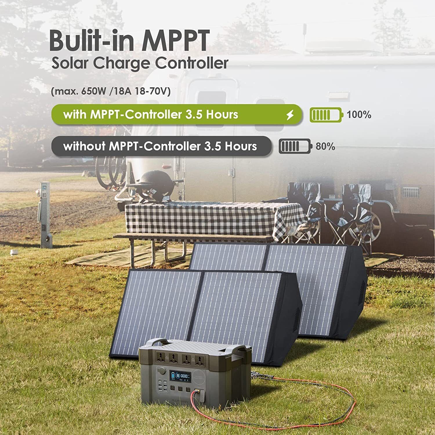 - Solar Charger Input: (18-70V, 18A max.)