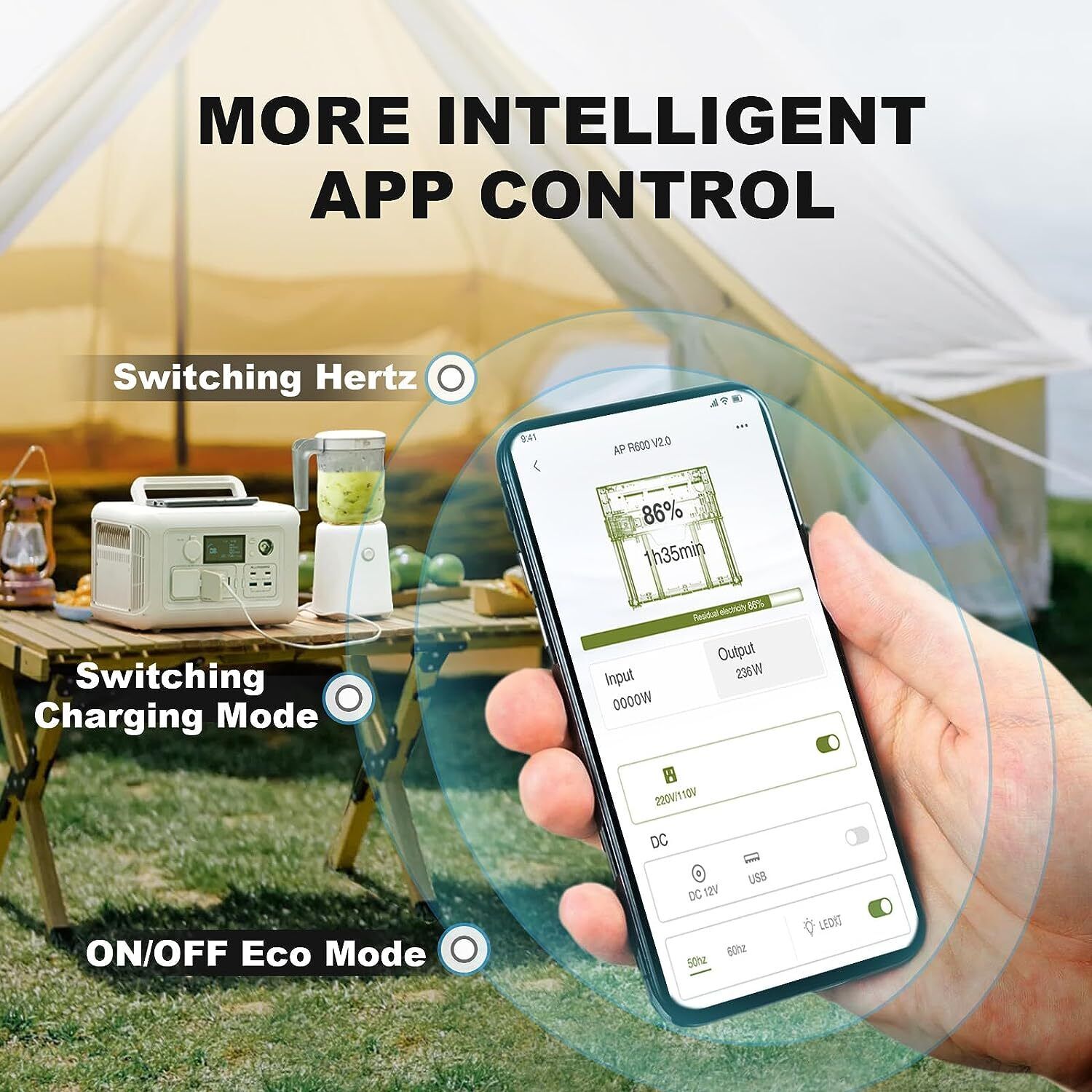 Charge 10 Devices at Once: With 2 pure sine wave AC outputs, 2 USB-C, 2 USB-A fast charging ports, DC outputs, a car cigarette lighter, and a 15W wireless charger, the R600 ensures all your devices stay powered up.