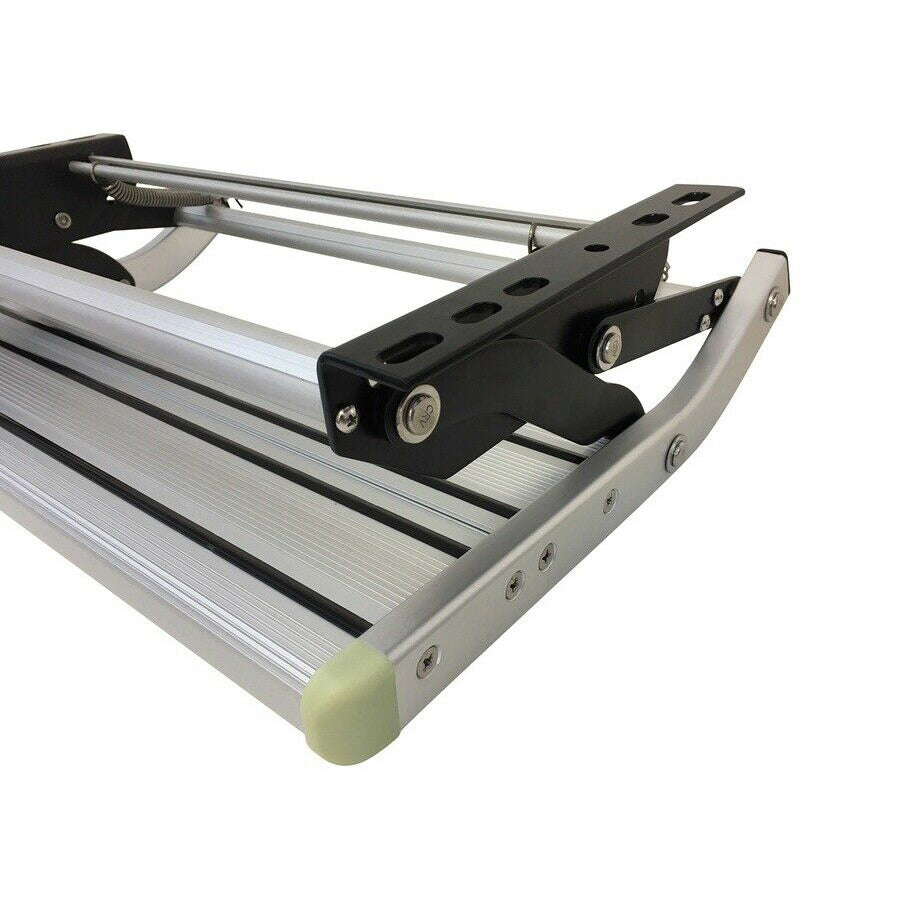 - Anodized ribbed aluminium footboard with integrated anti-slip rubber strips