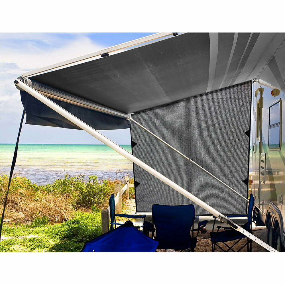 Note: Our privacy screens are designed with straps for attachment to your awning. It does not come with seams for threading onto awning tracks.