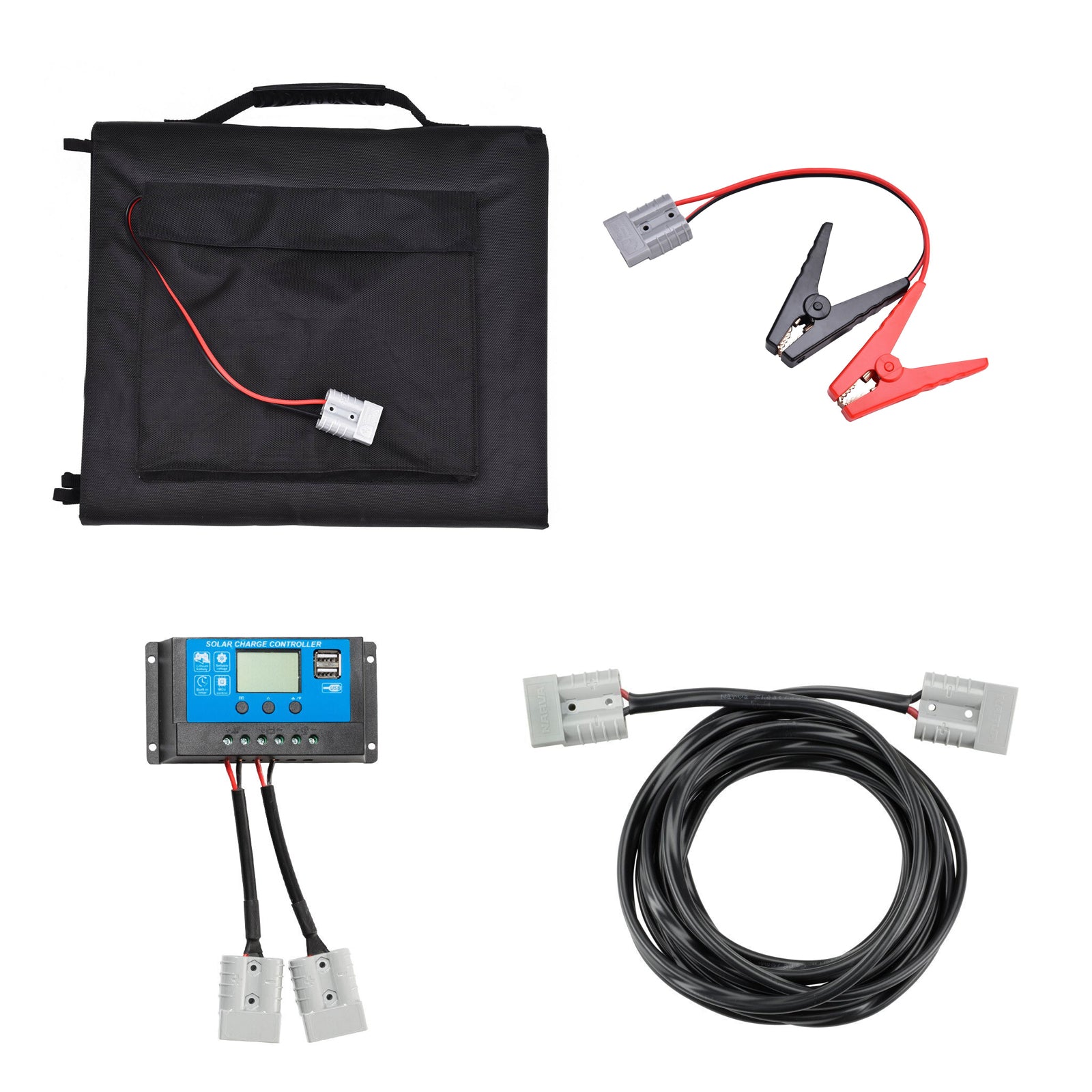 It comes with a controller which regulates voltage, ensuring devices will be charged safely and efficiently. The kit also includes an extension 2m cable, Anderson plugs and Alligator clips, ready to connect to your battery.