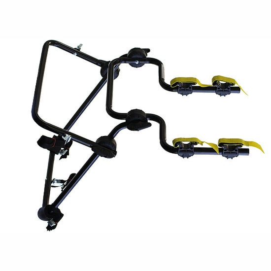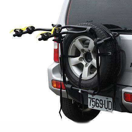 It attaches to your spare tire on your SUV, camper, 5th wheel trailer or motorhome. This universal spare tyre bicycle carrier allows fitting any tyres from 7' to 10' thickness (width).