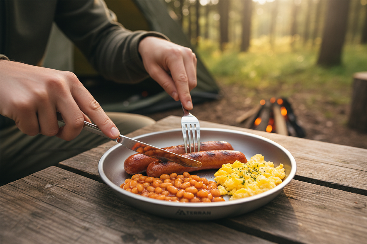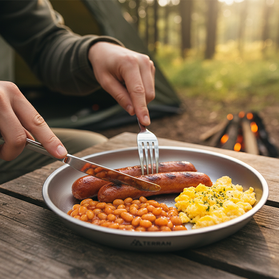 Forget the floppy plastic and clunky steel. The TERRAN Titanium Plate is ultralight, tough, and built to handle real camp meals without taking up space or adding weight.