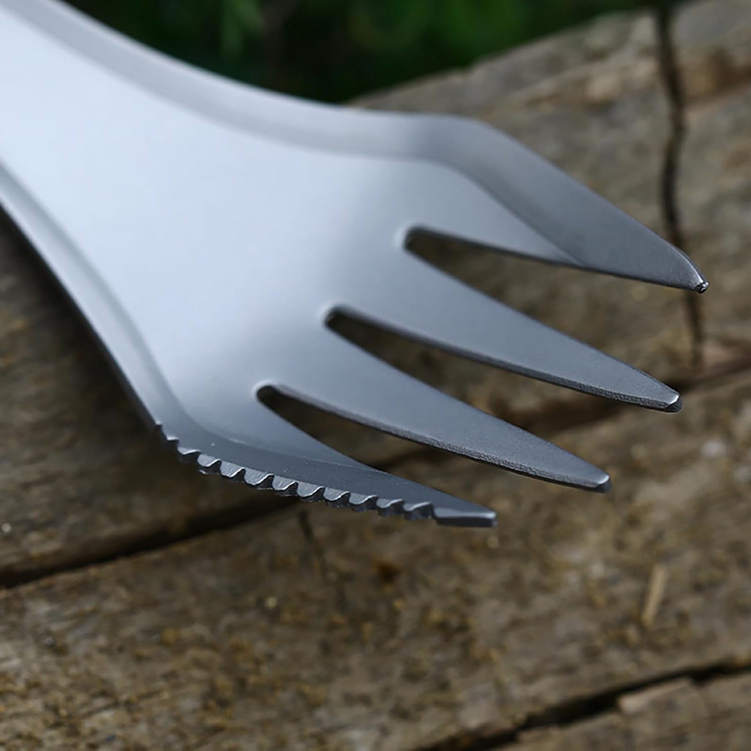 - 3-in-1 design: spoon, fork, and knife edge in one tool