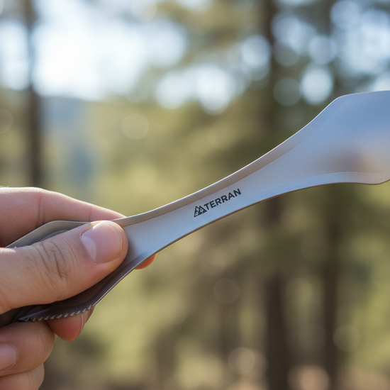 Compact, ultralight, and built to last, the TERRAN Titanium Spork is your all-in-one solution for eating outdoors. Combining a spoon, fork, and serrated edge in one ultralight tool, it’s ideal for hiking, camping, bikepacking, or even daily lunch kits.