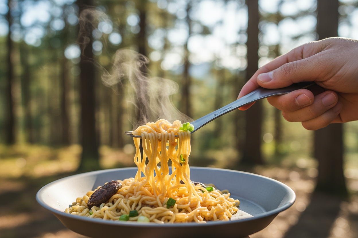 Made from strong, food-grade titanium, it resists rust, corrosion, and bending, without adding unnecessary grams to your pack. Whether you’re scooping soup, twirling noodles, or slicing soft foods, this spork has you covered.