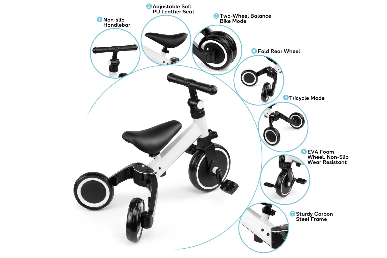 This toy can be used as a toddler tricycle or a balance bike (with or without pedals)