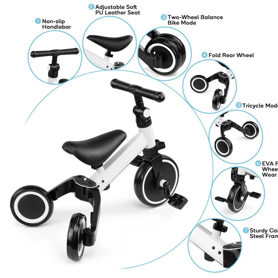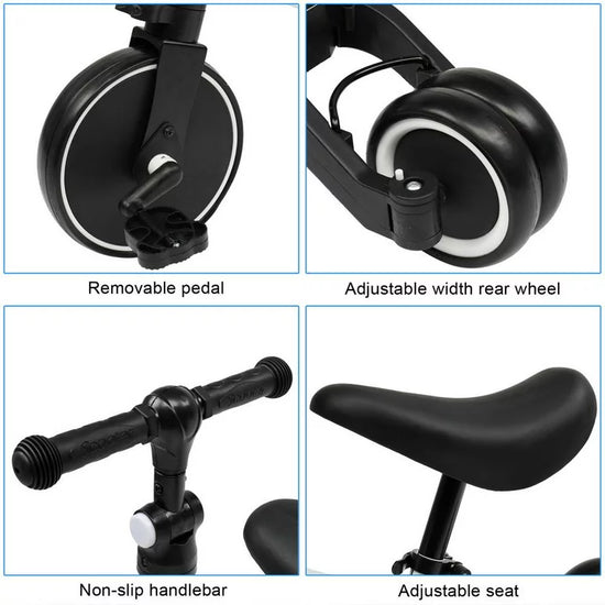 This toy can be used as a toddler tricycle or a balance bike (with or without pedals)