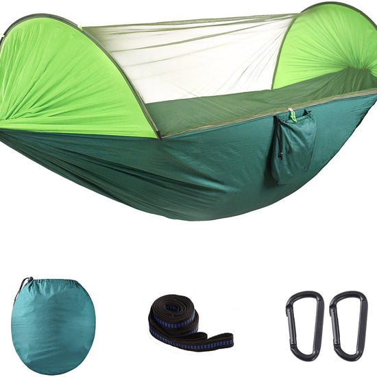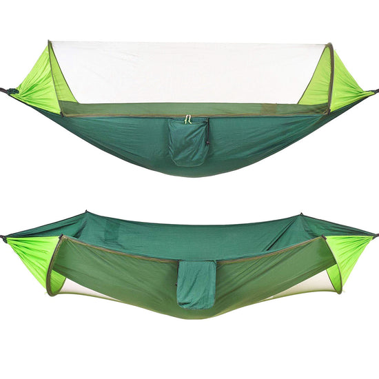 New model! Compact, lightweight, strong and mozzie proof portable hammock. The tunnel design makes even easier to set-up! You only need to attach the hammock between two trees and the mosquito net will set up automatically.