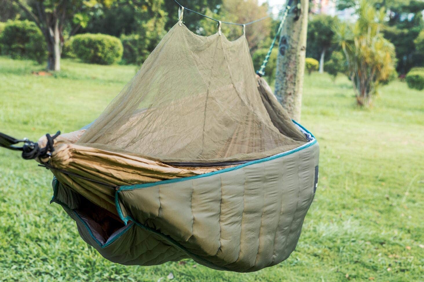 This quilt is shaped perfectly to fit under a camping hammock, to shield you from the wind and keep you warm all night, even during winter. It's also lightweight and shrinks to a small carry bag.