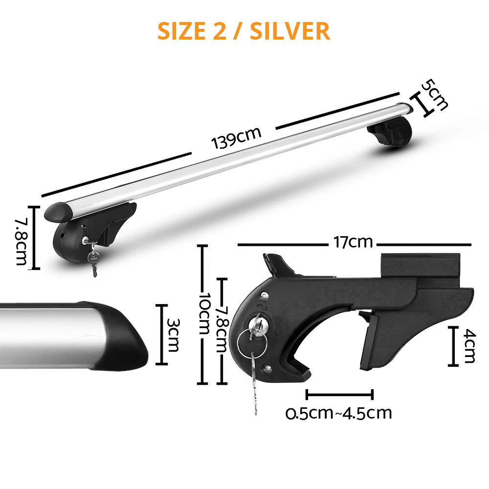 Although the crossbars are adjustable, we have 2 sizes available for a better fit to your car. Please choose carefully the correct size as each option has a maximum fitting width (the distance between your rails).