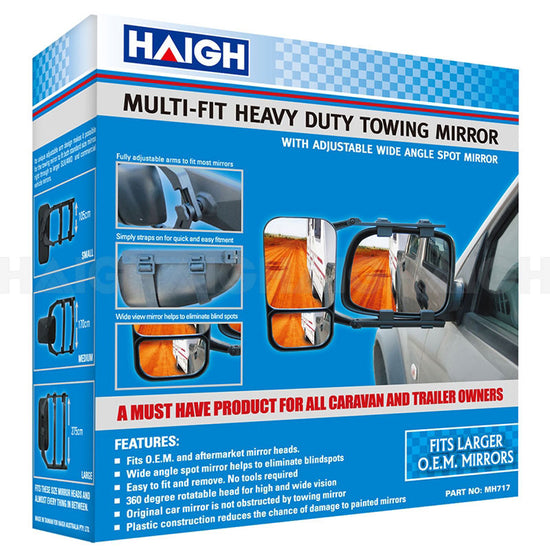 This towing mirror comes with clamps and straps to go over your existing door mirror to extend your vision. Better visibility of your load when towing, increasing your safety.
