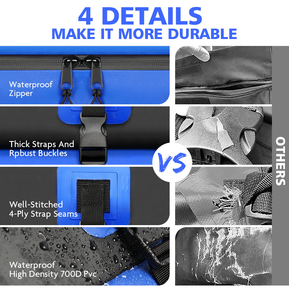 - Triple-layer high-density 900D PVC fabric for superior waterproofing and durability