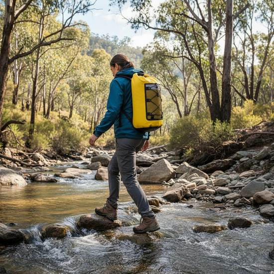 With adjustable backpack straps and a roll-top closure, it’s both functional and comfortable to carry. An external mesh pocket gives you quick access to smaller items or a place to store wet gear separately. Available in 10L and 30L sizes, and in bold outdoor colours, it’s ideal for hiking, camping, kayaking, fishing, boating, or beach days.